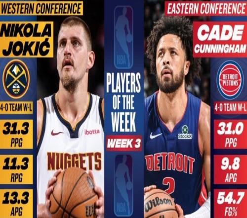 第一则:周最佳球员诞生,康宁汉姆约基奇当选
