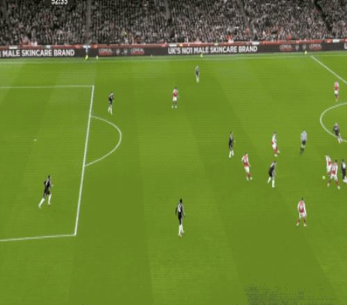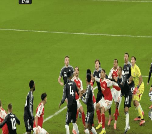 第48分钟,阿森纳获得本场第一个角球,萨卡开出,加布里埃尔在马丁内斯的身下抢点,将球打进。