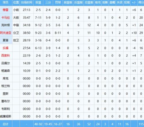 马刺数据如下:
