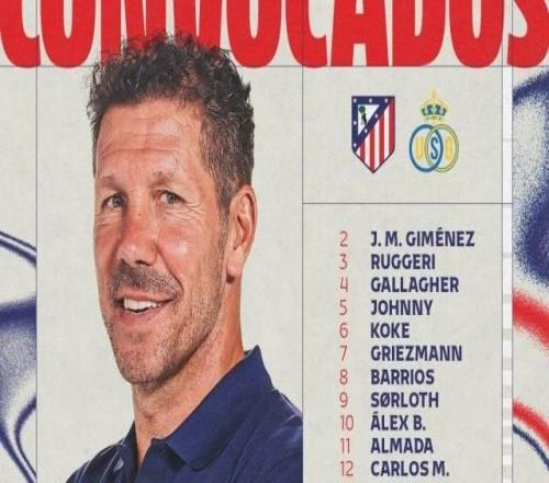 【名单】蜘蛛、格子领衔马竞欧冠客战